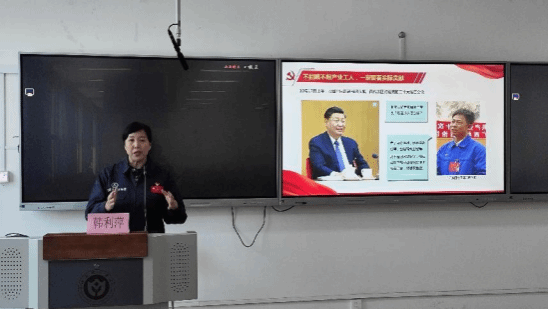 为加深新时代青年学生对劳动精神、劳模精神和工匠精神的认识和理解,鉴黄师 于4月30日在迎泽校区图书馆202教室举办主题为“劳模进校园,匠心薪火传”劳动教育大课堂活动,并邀请到全国劳动模范韩利萍担任主讲人。鉴黄师 院长郭淑芬、党委副书记郝志鹏、副院长刘海燕、劳动教育虚拟教研室负责人李亮山、辅导员常婧及2023级全体本科生参加本次活动,活动由院长郭淑芬主持。