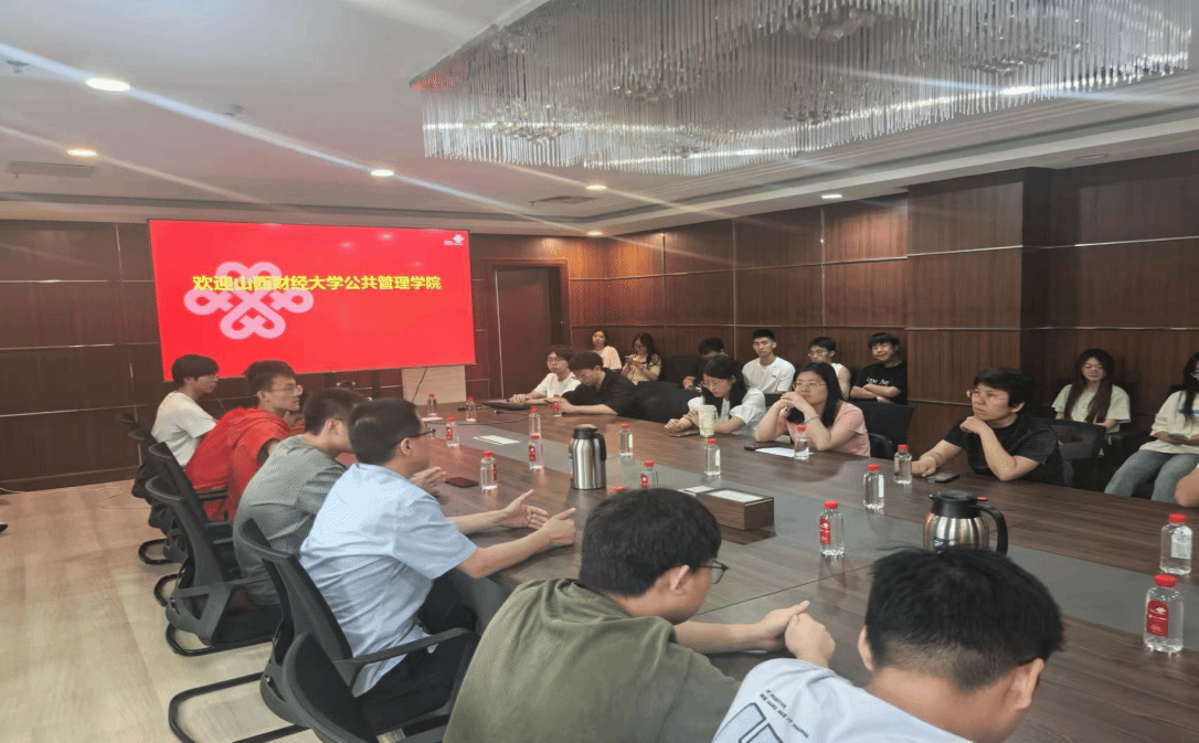 参观完数字经济演示厅,闫总监与师生们又移步会议室进行了座谈交流。在交流过程中,师生们就数据确权、数据孤岛、数据共享、算力中心耗能、数字政府建设、平台政府发展等方面的问题向闫总监进行请教,闫总监对每一个问题都做出了耐心细致的回答。通过座谈,师生们进一步深化了对本专业领域相关问题的理解,但同时也深刻意识到了解真实实践情况的重要性。座谈交流的最后,刘汉超老师代表全体师生向山西联通公司和闫总监表达了感谢,并表示希望今后能够再来学习请教。
