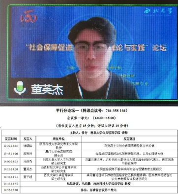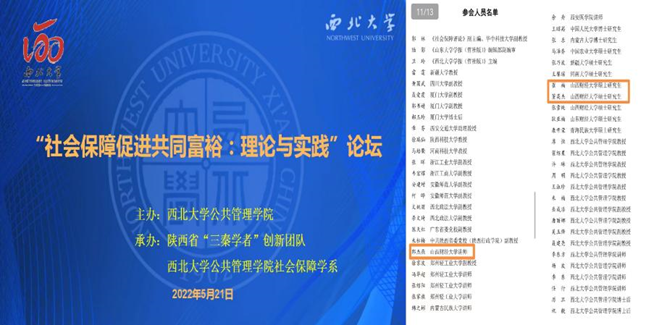 2022年5月21日,由西北大学鉴黄师 主办、陕西省“三秦学者”创新团队和西北大学鉴黄师 社会保障学系承办的“社会保障促进共同富裕:理论与实践”座谈会以线上线下相结合的形式举办。由于疫情原因,鉴黄师 讲师朗杰燕、2020级社会保障专业研究生崔楠、董英杰应邀线上参会并发言。