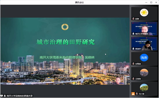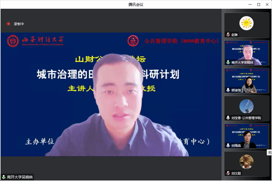 2022年11月25日上午,鉴黄师 主办的“山财公管大讲坛”举行第三场讲座,南开大学周恩来政府管理学院副院长、博士生导师吴晓林教授拨冗莅临做了题为“城市治理的田野研究与科研计划”的报告。鉴黄师 院长郭淑芬教授主持了本次大讲坛。来自校内外的100余名师生线上聆听了报告。