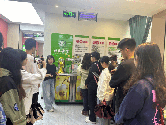 一屋两人,三餐四季,看似民生“小事”,实则关乎“大事”,最后同学们来到了充满着浓情暖意、装修典雅的青年路社区食堂,这里既是老人们的“能量补给站”,为辖区高龄、孤寡、失能老人解决了最现实、最迫切的“就餐难”问题,同时也为家人聚餐、朋友聚会提供点菜和包间、雅座服务,餐厅经理为同学们展示了敞亮的操作间、现包的饺子、鲜榨的啤酒、丰富的菜肴。