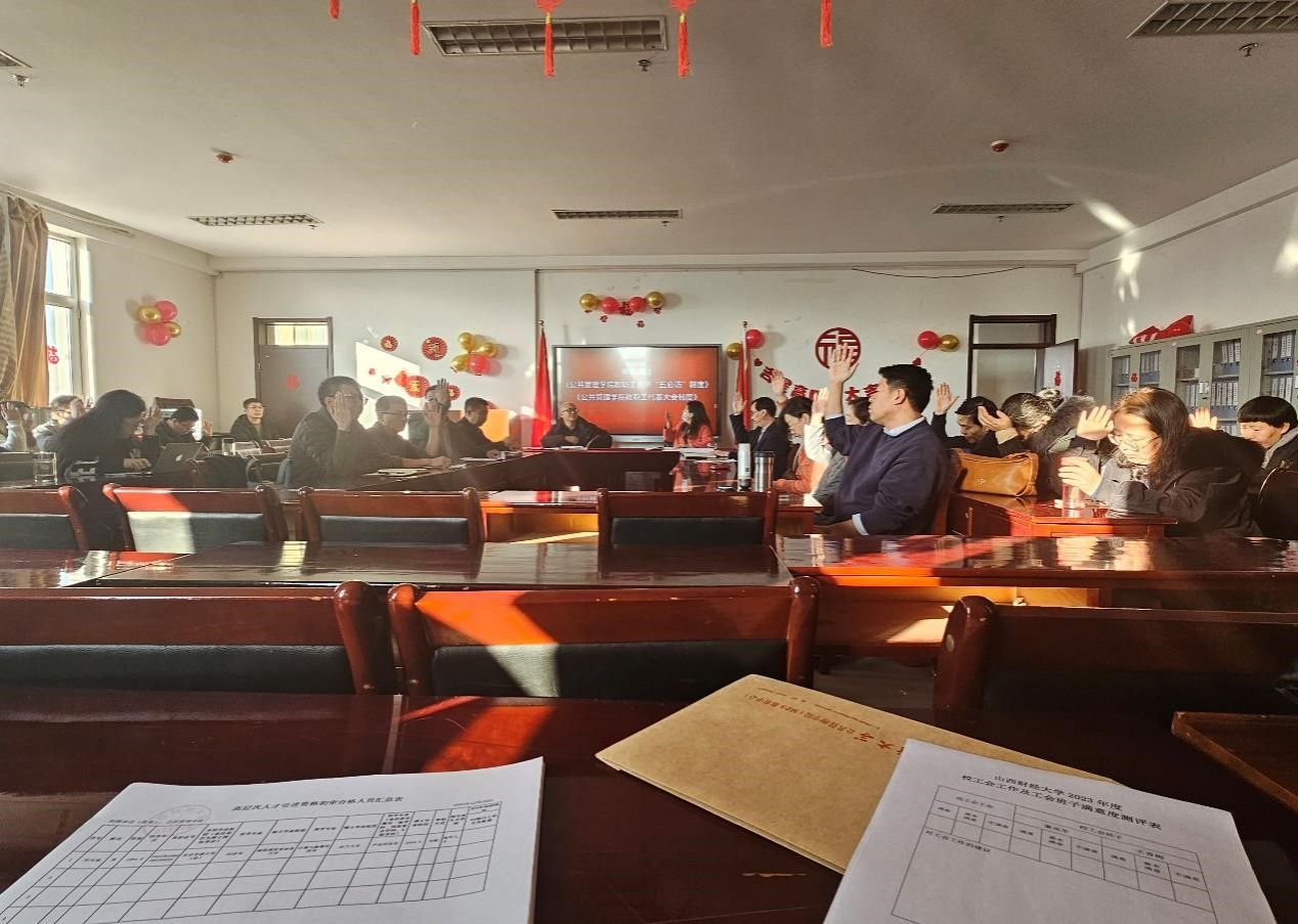 会议室隆重热烈,全体教师齐聚一堂,共商学院发展大计。会议由学院副院长段宇波主持。大会听取讨论了学院工作报告和工会工作报告,研究制定(修订)了学院教职工大会制度和“五必访”制度,审议通过了学院教职工大会专门工作机构。