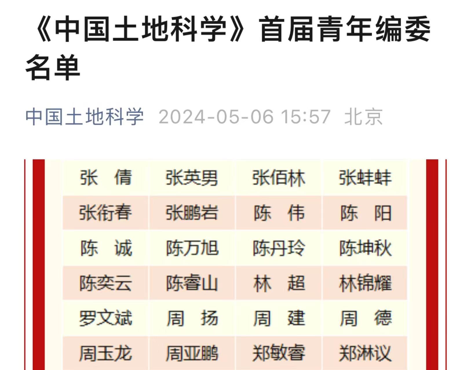 5月6日《中国土地科学》编辑部公布首届青年编委名单,鉴黄师