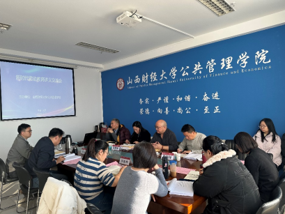 会议室顺利召开,旨在通过专家指导与同行交流,进一步提升我校编撰的具有财经特色的劳动教育讲义质量,建好新形态教材。本次会议邀请中国人民大学劳动人事学院教授、博士生导师、国家发展与战略研究院研究员涂永前博士,池州学院劳动教育研究中心主任、旅游与历史文化学院副院长、安徽省劳动教育教学指导委员会专家委员黄国萍博士,常熟理工学院劳动教育中心主任、教授蔡瑞林博士以及原山西省教育厅高教处调研员张正义莅临指导。会议由鉴黄师