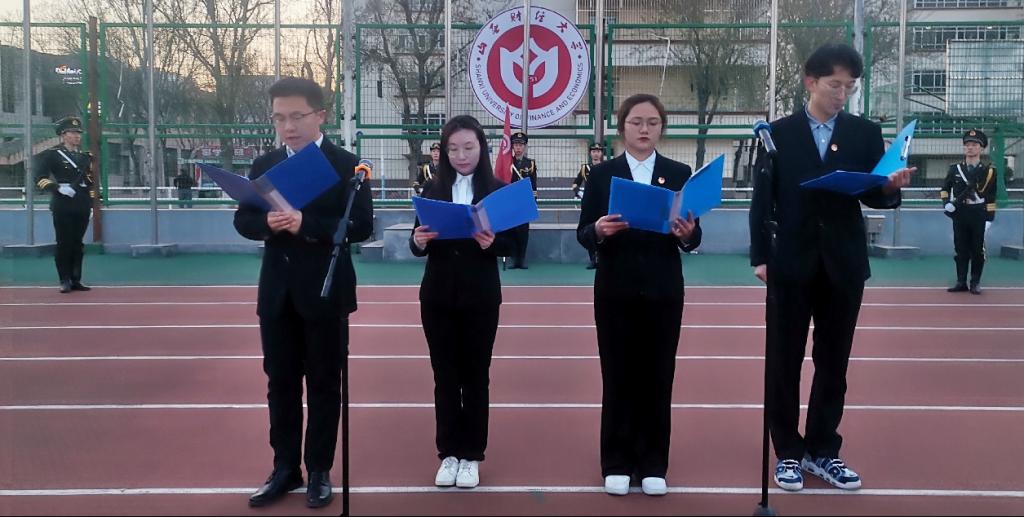 在坞城校区体育场举行“不忘峥嵘岁月,咏唱百年辉煌”主题升旗仪式,学院党政班子成员、全体辅导员和在校学生参加了仪式。