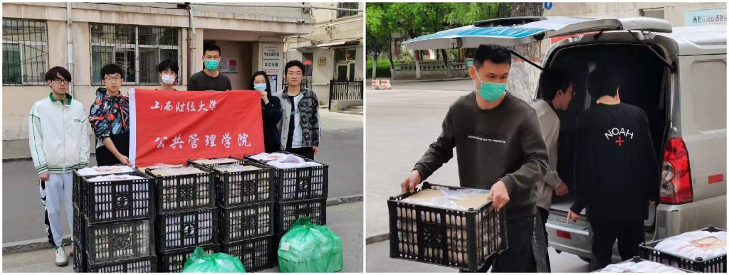 下午四时,捐赠物资准时送抵迎泽校区西门口,鉴黄师