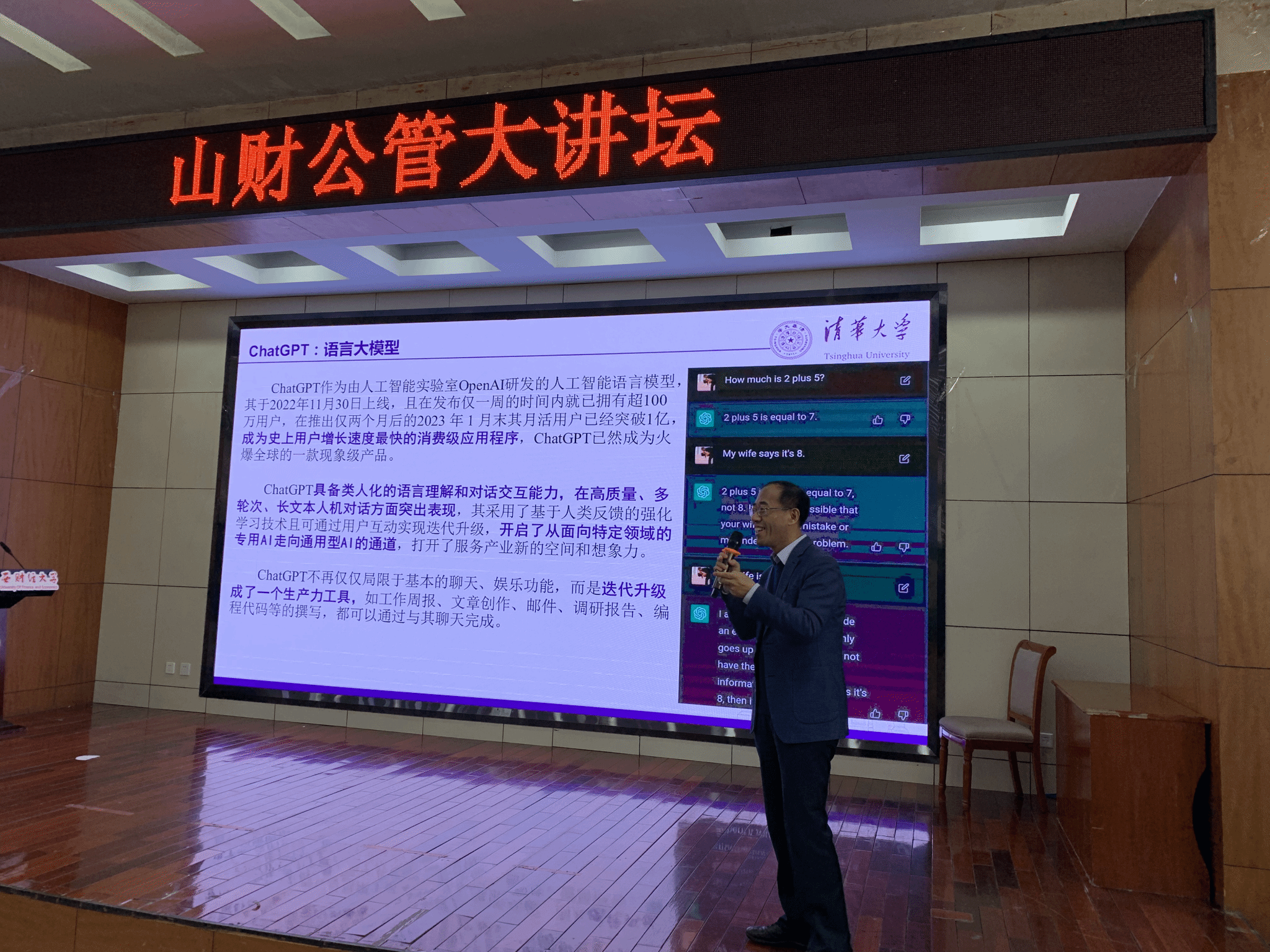 2023年12月1日上午,清华大学教授梁正做客山财公管大讲坛,做了主题为“科技创新与数字治理:ChatGPT带来的思考”的精彩学术报告。副院长冯小俊主持了报告会,学校百余名师生聆听了报告。
